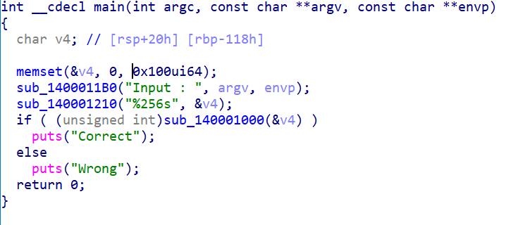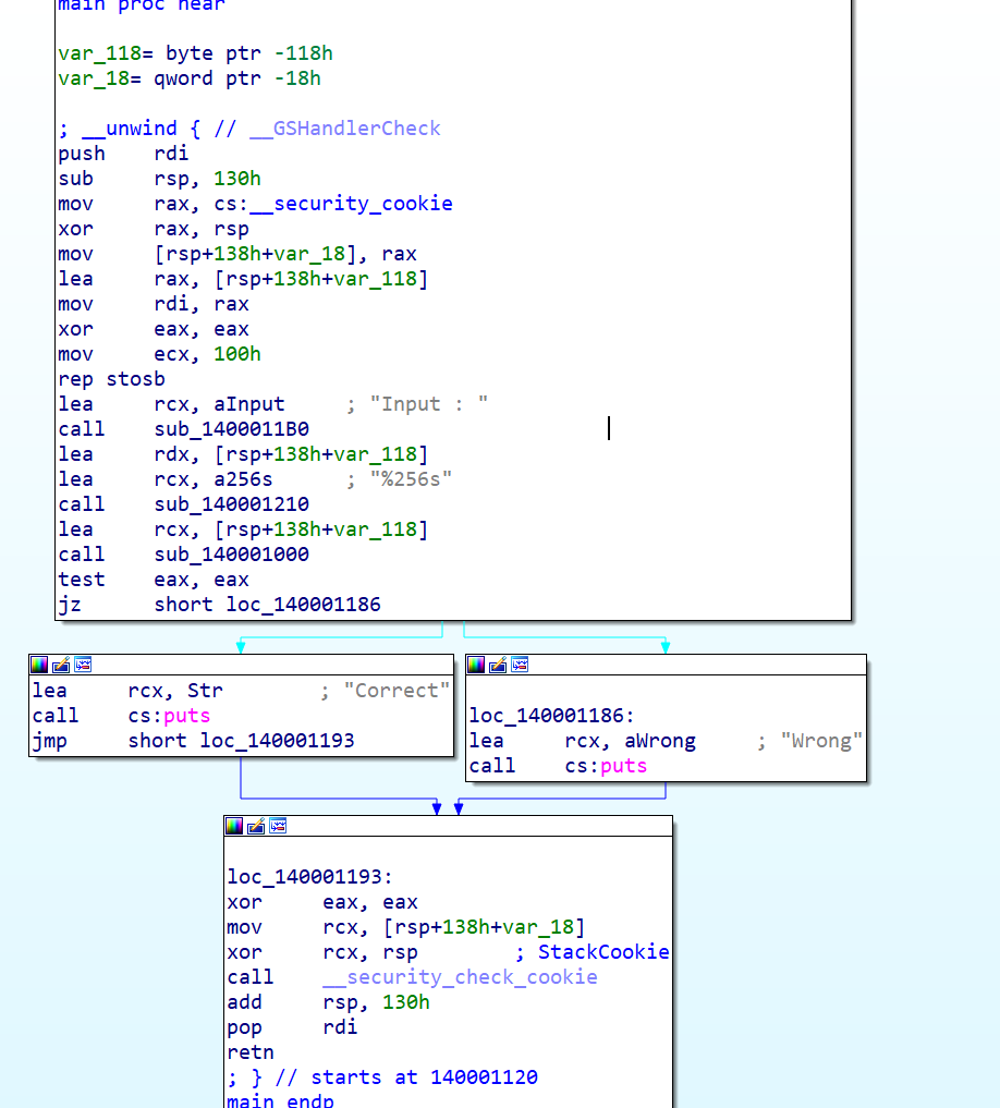 분기문 분석을 위해 sub_140001000를 열어본다.